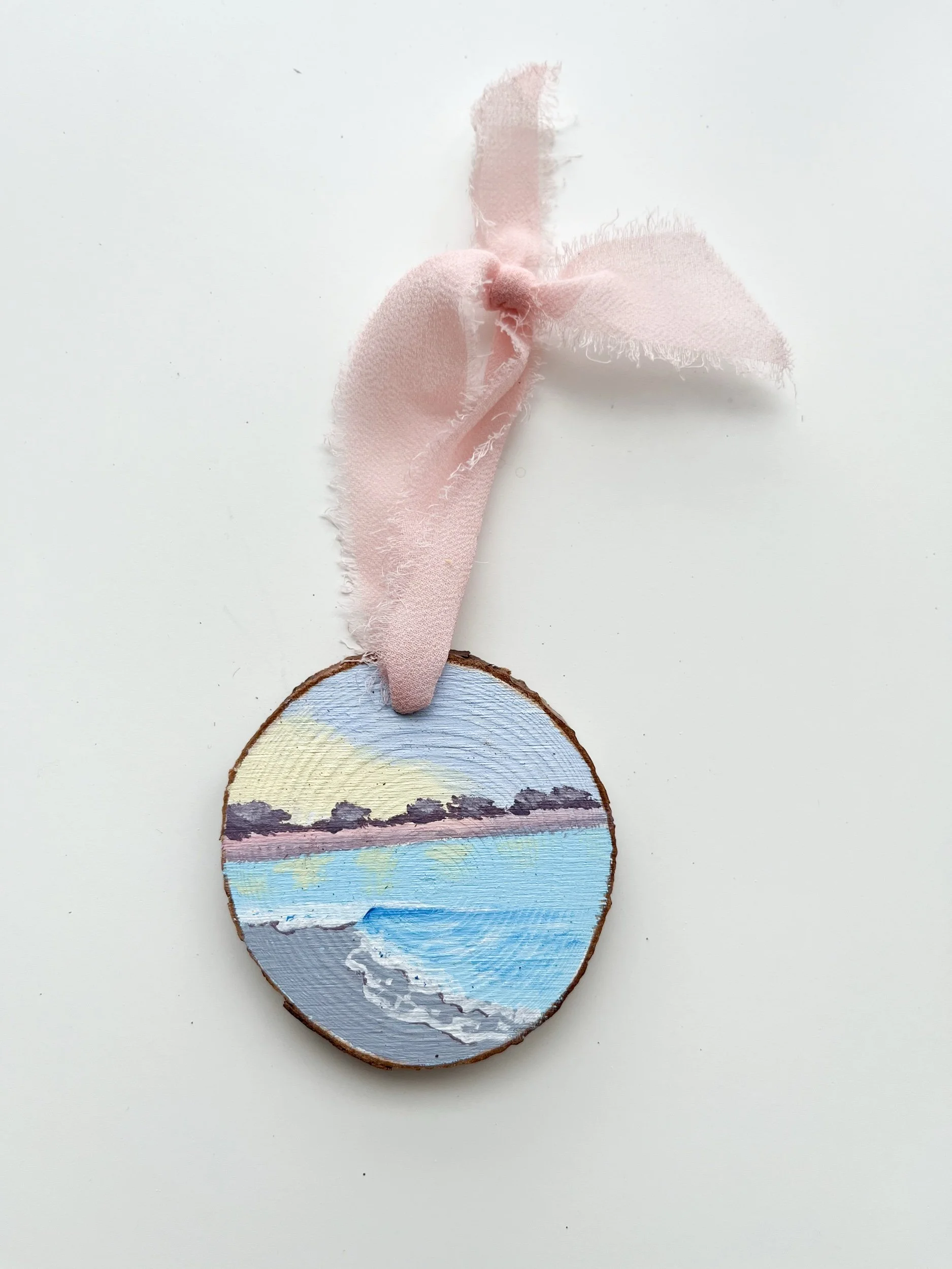 A hand painted wooden ornament made with professional grade quality acrylic paint, sealed with permanent satin varnish to make sure this family heirloom lasts for generations.