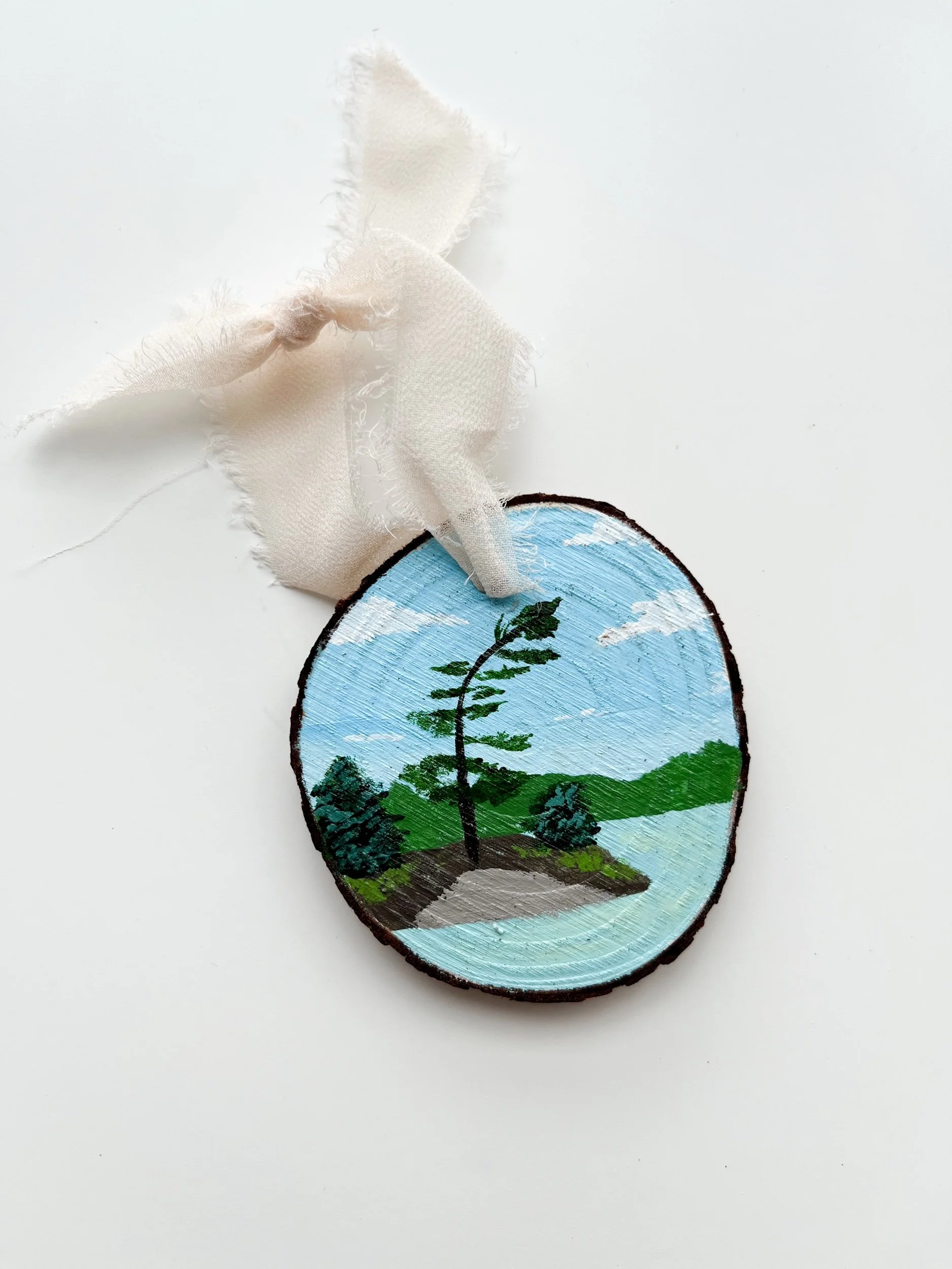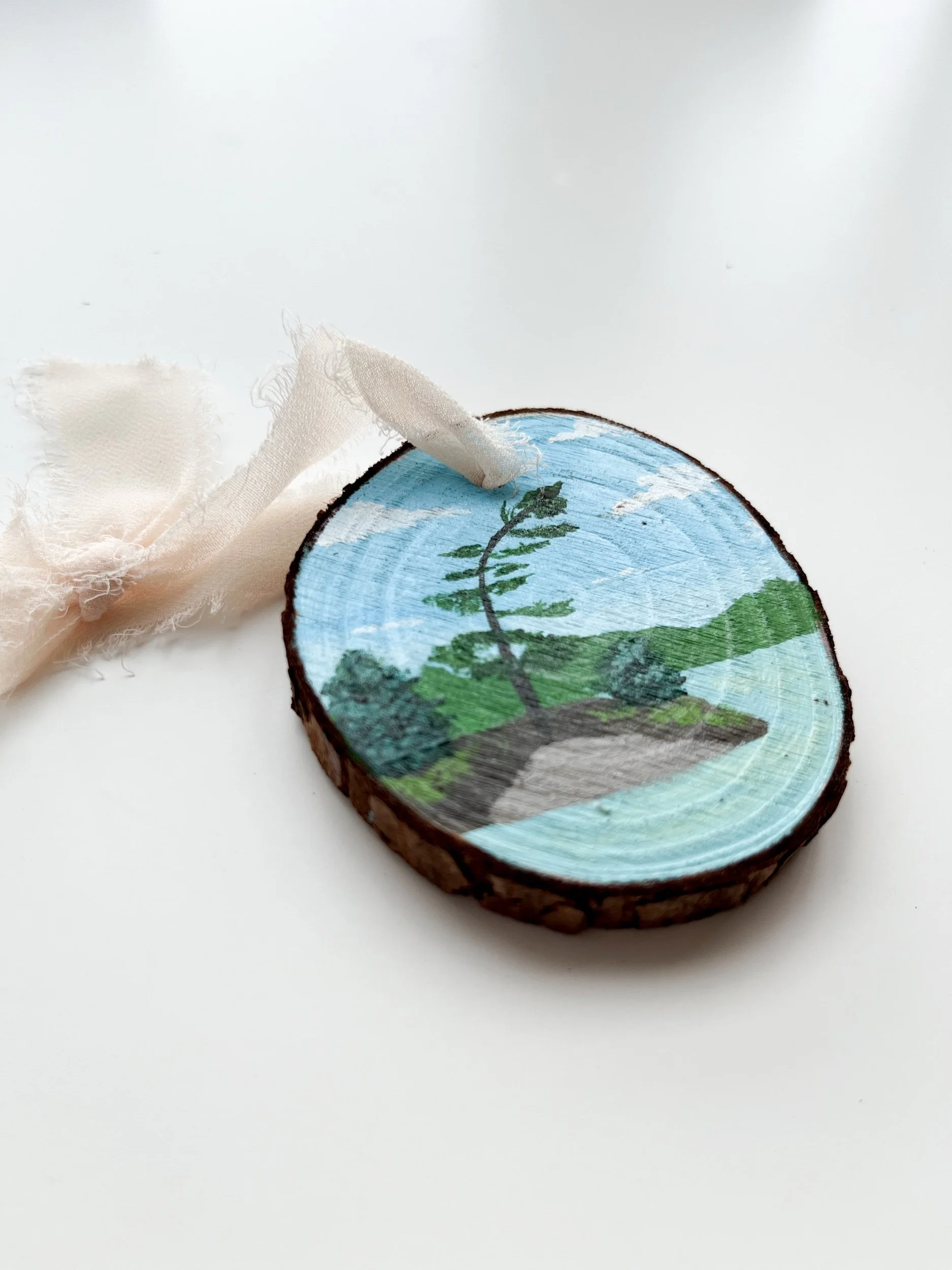 A hand painted wooden ornament made with professional grade quality acrylic paint, sealed with permanent satin varnish to make sure this family heirloom lasts for generations.